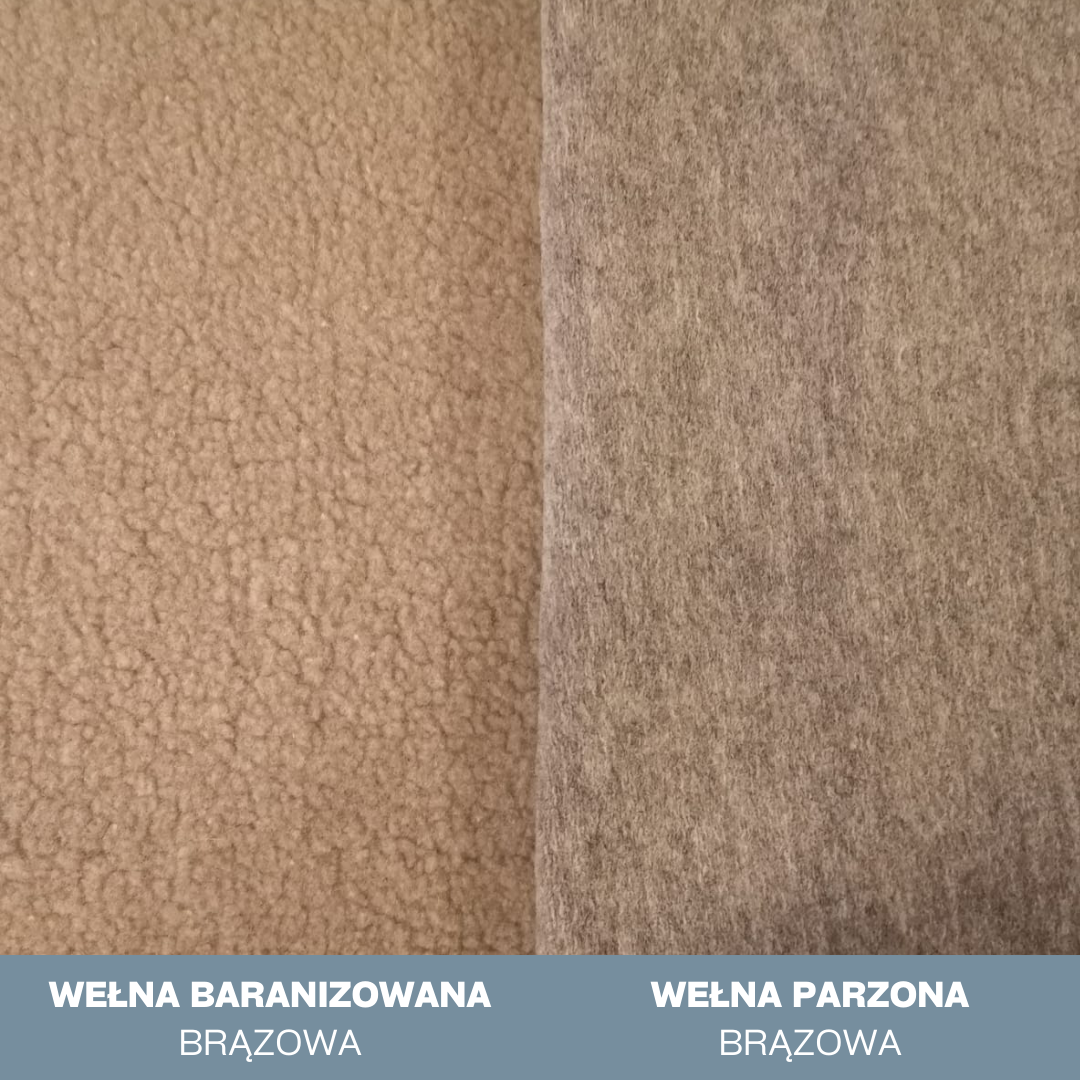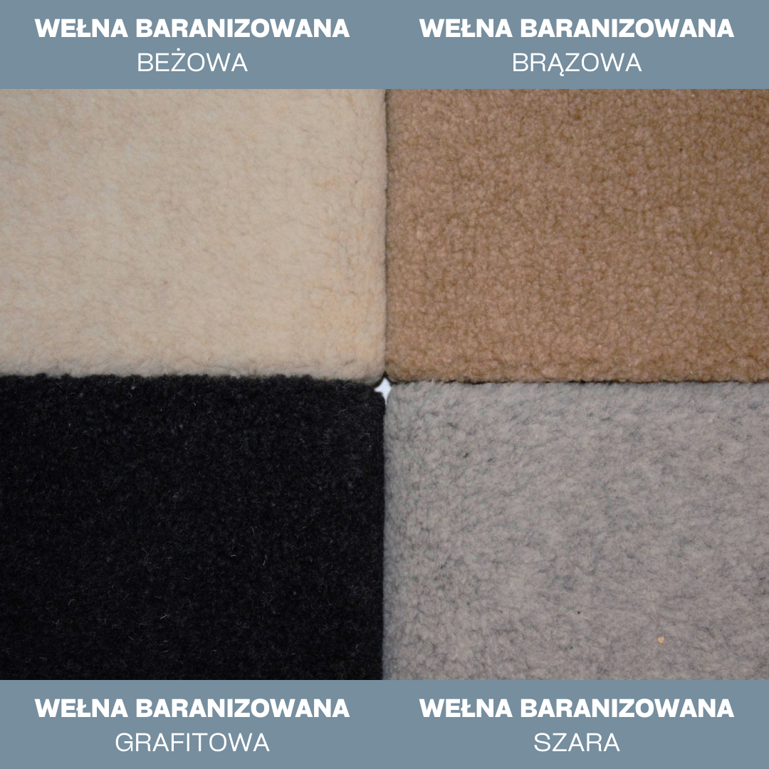 Wełna premium baranizowana występuje w czterech kolorach: beżowym, szarym, brązowym i grafitowym.